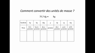 Conversion unités MASSE